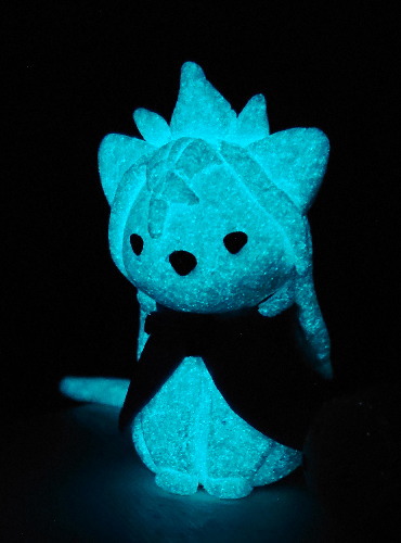 夜寝る時に部屋の明かりを消すと、ぼんやりとイデにゃんが光って面白いので、
