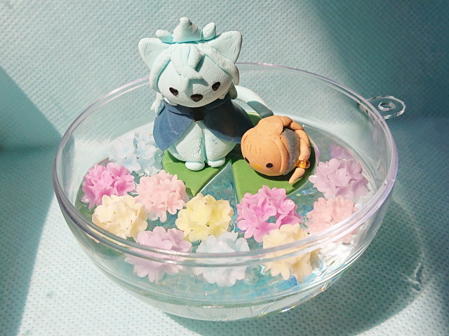 ▲イデにゃんと夢ぴっぴと浮き紫陽花