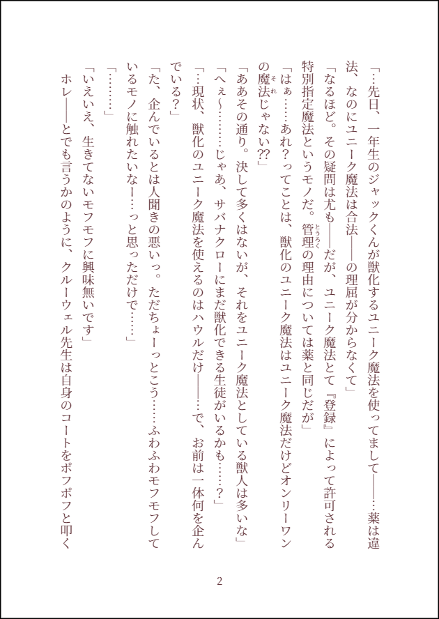 二話目も書いたけど、地の文ログアウトでただの会話文でしかないので、UPを躊躇しております。