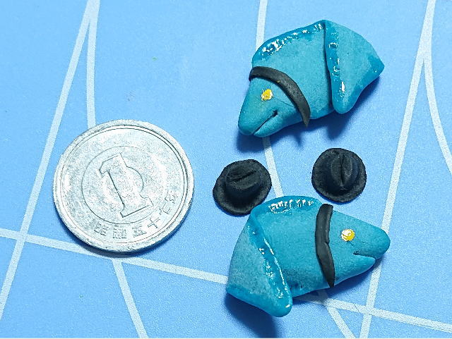 ▲ウツボ双子二号(帽子接着前/単品完成/ピアス加工途中)